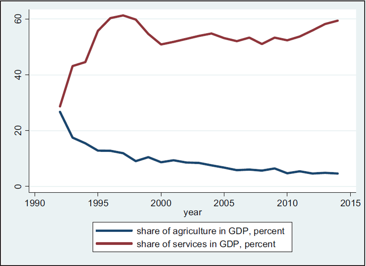 Share of agriculture and services in GDP. Source: World Bank 2017.