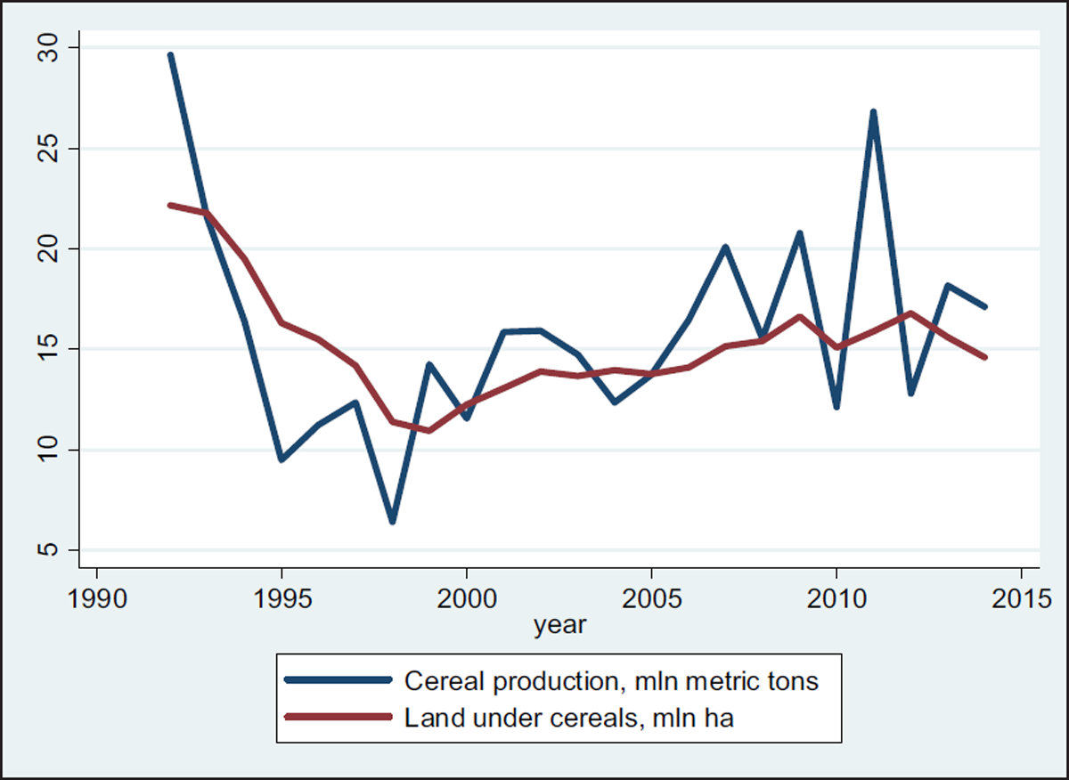 Cereal production data, 1990–2014. Source: National Statistical Agency of Kazakhstan (n.d.).