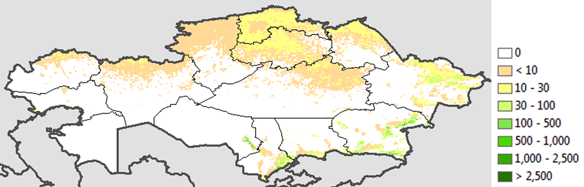 How does climate change affect agriculture? Do temperature increases harm or benefit agricultural producers? According to the World Bank’s Adapting to Climate Change in Europe and Central Asia report, in Kazakhstan, areas projected to see increasing rainfall could see expanding opportunities for rain-fed, high-yielding winter wheat. In contrast, other parts of the country are likely to face reduced water availability, and periodic drought could see lower crop yields (World Bank 2017). According to the report, winter and spring precipitation will see respective increases of 9 per cent and 5 per cent by mid-century. However, the models predict that precipitation intensity will increase, and the precipitation increase will partially come from extreme storm events. According to current climate change trends, an increase in average temperature is expected (IPCC 2001).
